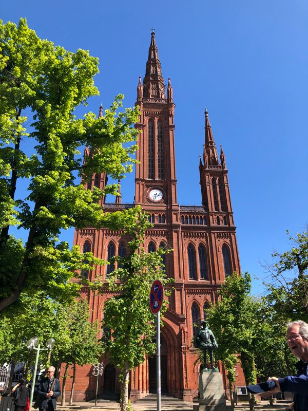 The market place is a lively area with lots of cafes and shops around its perimeter. Here you will find The Marktkirche (Market Church) which is the tallest building in Wiesbaden. The church was damaged significantly during WWII but has undergone several restoration projects. Its five impressive red towers stand tall against the skyline and the sound of the 49 hand pulled bells resonates around the city. For those that are inclined to do so, can climb up inside one of the towers to get a stunning view over the city.