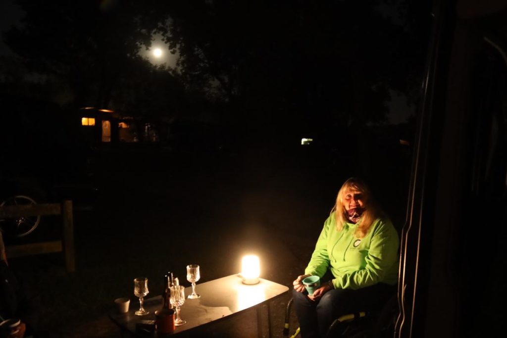 By now, the sun had begun to set and the lights from the campervans, caravans and tents began to twinkle as campers settled in for a relaxing evening. We sat outside with our glass of wine, our cheese and crackers.