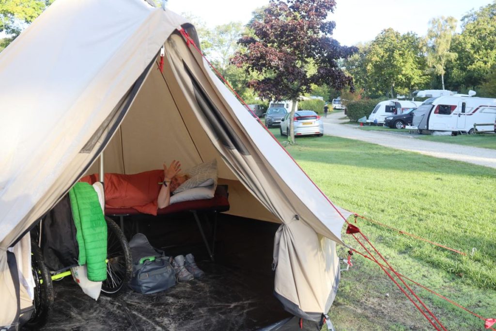 Oh my! It was wonderful. A brown Tipi tent from Robens was pitched next to the teeny weeny tent. It looked so different from any other on the campsite, standing tall and proud, like a mini big top!