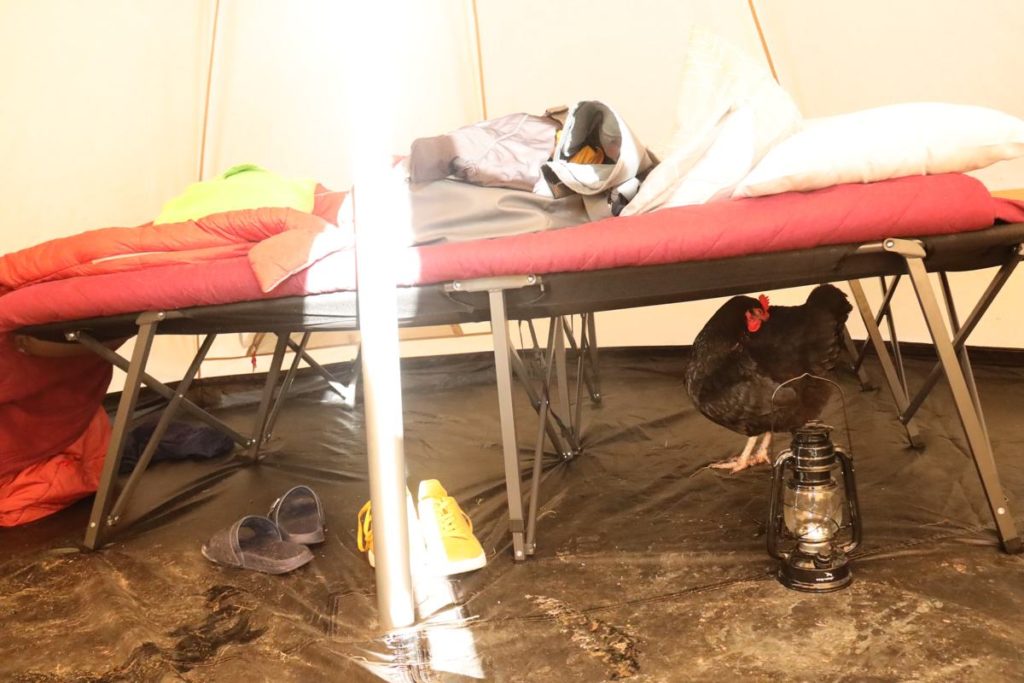 One thing that I had forgotten about camping is to always zip up the tent doors, unless of course you want wildlife visitors. Whilst nipping to the loo the camp chicken had taken a liking to my tent and had made itself quite at home under my bed. Now I had been promised fresh eggs for breakfast, but I had not anticipated this! Well I suppose that you couldn’t get any fresher!