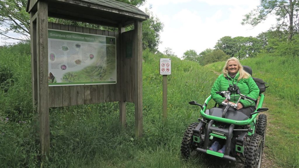 The first half of the track, from Smardale to the Viaduct has been lovingly resurfaced and makes this walk ideal for most types of wheelchair. I have in fact wheeled to the viaduct in my manual chair, and it was fairly easy going. The second half of the route, from the viaduct to Newbiggen, is a little uneven in places. However, soon this will all change, as in October 2019 plans are afoot to resurface this section too, making the whole of this walk accessible for all in any type of wheelchair. To find out more about how the ‘Miles Without Stiles’ routes are audited please watch my interview with Rachel as we walked a similar route together along Podgill Viaduct.