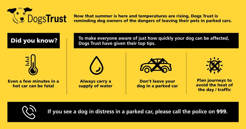 Dogs Trust has teamed up with other charities to support the Dogs Die in Hot Cars campaign, reminding owners that whilst we all love to get outside and enjoy the sunshine, it’s very important to remember that the hot weather might not be as much fun for our furry friends.