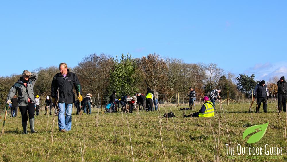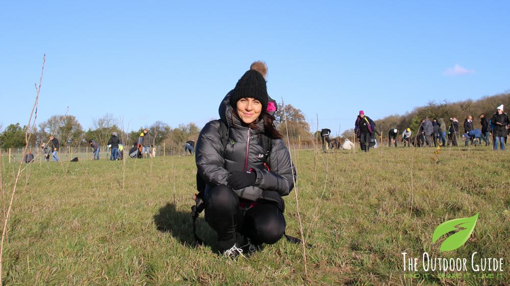 Julia Bradbury and The Outdoor Guide were invited to attend the Carbon Capture Day set up by Premier Paper Group and the Woodland Trust. Every new tree at Heartwood has been planted by a volunteer and we helped out in the last planting season this year. The aim was to plant 2500 native tree species and the 150 volunteers managed 3000!