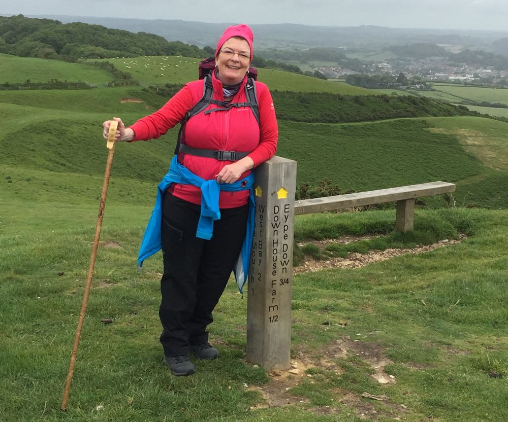 What a lovely couple. We got talking while a got a rest leaning on my crook, then we carried on together to the top of the hill with a number of stops on the way. I do apologise I have forgotten the couples name who live in Bristol and tour round in their motorhome most weekends, they were so interesting and had lots of local knowledge. Thank you. They took a photograph of me at Thorncombe Beacon I felt so proud.