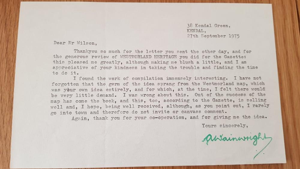 Shortly after Westmorland Heritage’s publication in 1975, Wainwright wrote to Paul thanking him for his generous review of the book and for the initial idea.