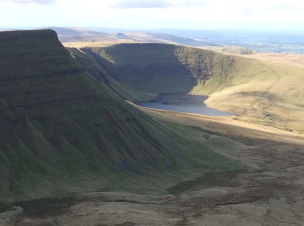 This beautiful lake on the western edge of the Beacons is one of Wales’ most iconic, and offers a relatively easy hike to its shores for families. From the small car park near Blaenau Farm (grid ref. SN 798 238), it’s a mile gently uphill to Llyn y Fan Fach, the smaller of two lakes nestled under the mighty hulk of Picws Du. According to legend, a farmer called Rhiwallon met a beautiful lady called Nelferch on the shores and they married and had three sons. But, after he struck her three times, Nelferch returned to the lake, leaving Rhiwallon to die of a broken heart. From Llyn y Fan Fach, more experienced walkers can continue up the ridge and along to Picws Du, although this is a challenging route and conditions can change dramatically, even on the sunniest of days.