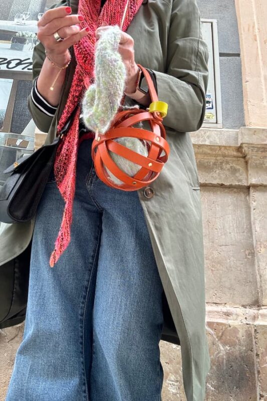And kit, waterproof rucksack with pockets, if you want to knit as you go take a portable bag – I sell Geo-Metry leather bags handmade in Denmark. These are the perfect yarn carrier for on the go.