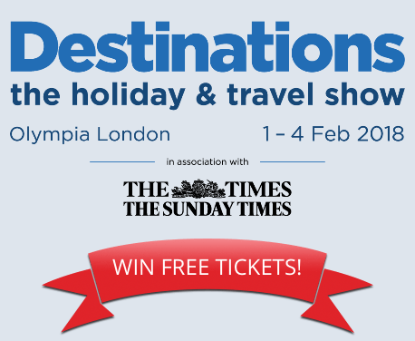 Enter here for two free tickets to Olympia London Destinations Show February 2018.