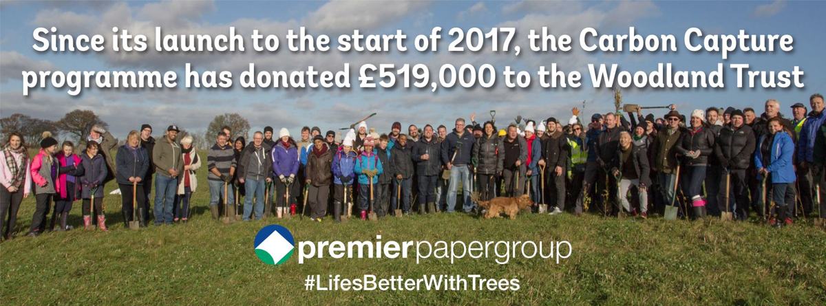 The Premier Paper Group is a leading independent paper merchant who have launched a carbon capture scheme that is a low cost environmental programme that helps create native woodlands in the UK. It demonstrates that organisations can have a responsible approach to the environment by being part of this method of mitigating co2 emissions and reducing their carbon footprints. 100% of money raised by Premier Paper Group from their clients who are part of the scheme goes to the Woodland Trust.
