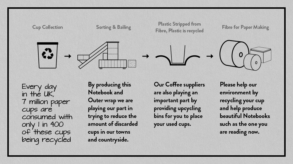 With Coffee Notes we started with the product. Recycled Coffee Cups made into Notebooks? How could we refuse.