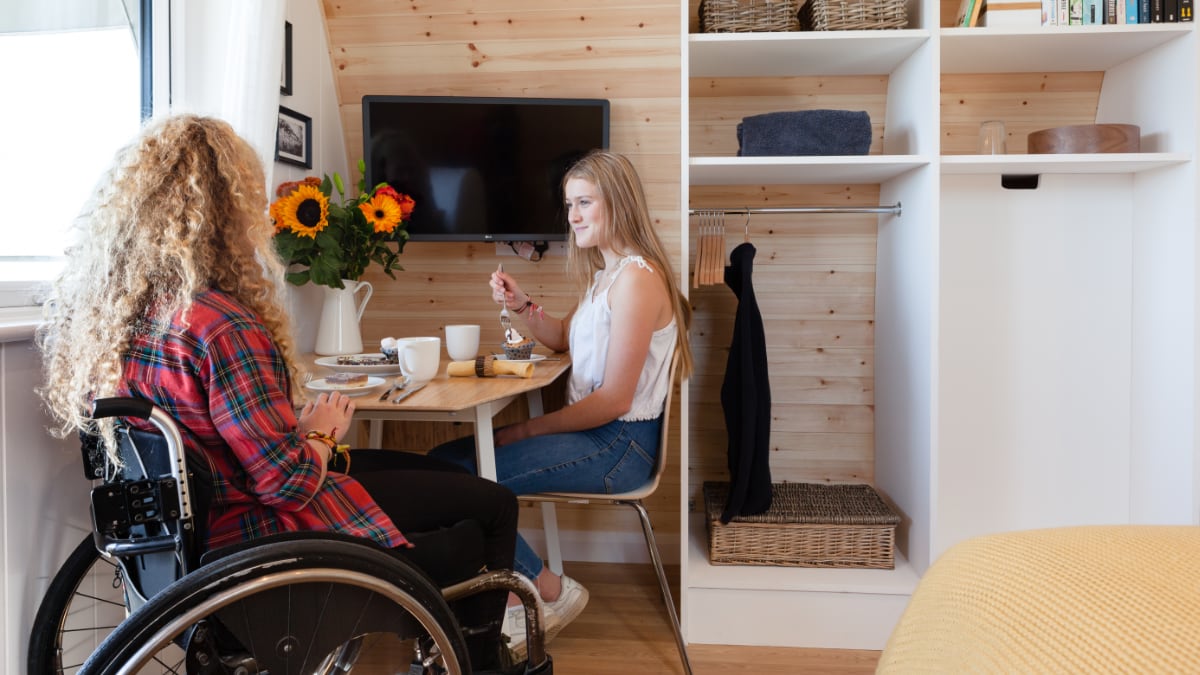 Our pods are wheelchair friendly and universally accessible, which means that you can effortlessly click-in/click-out the disabled bathroom fittings to cater for the disabled market and able bodied market simultaneously. They are completely inclusive with access features including; level entry, wide doors and 1.5 metre turning circles in all the right places. For true accessible functionality, Omnipods and cabins come with a stylish wet room with top of the range, accessible bathroom fixtures, a custom built kitchen area and electrical sockets/USB ports at appropriate heights.