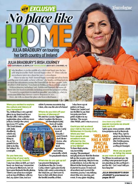 ‘I have to take my Walk Yourself Happy cartridge out of my brain and flip into Irish mode, so bear with me!’ she laughs, settling back to recount her adventures across the Emerald Isle for four-parter Julia Bradbury’s Irish Journey …