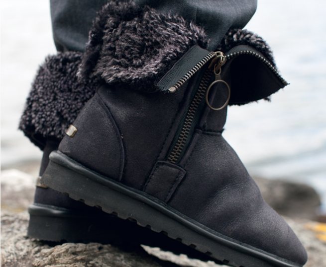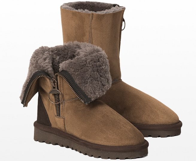 Chunky, ring-pull zips lend a fashion edge to our sheepskin boots. Do them up to show off the zip or fold them down to expose the contrast fleece. With rubber soles and suede heel protectors.