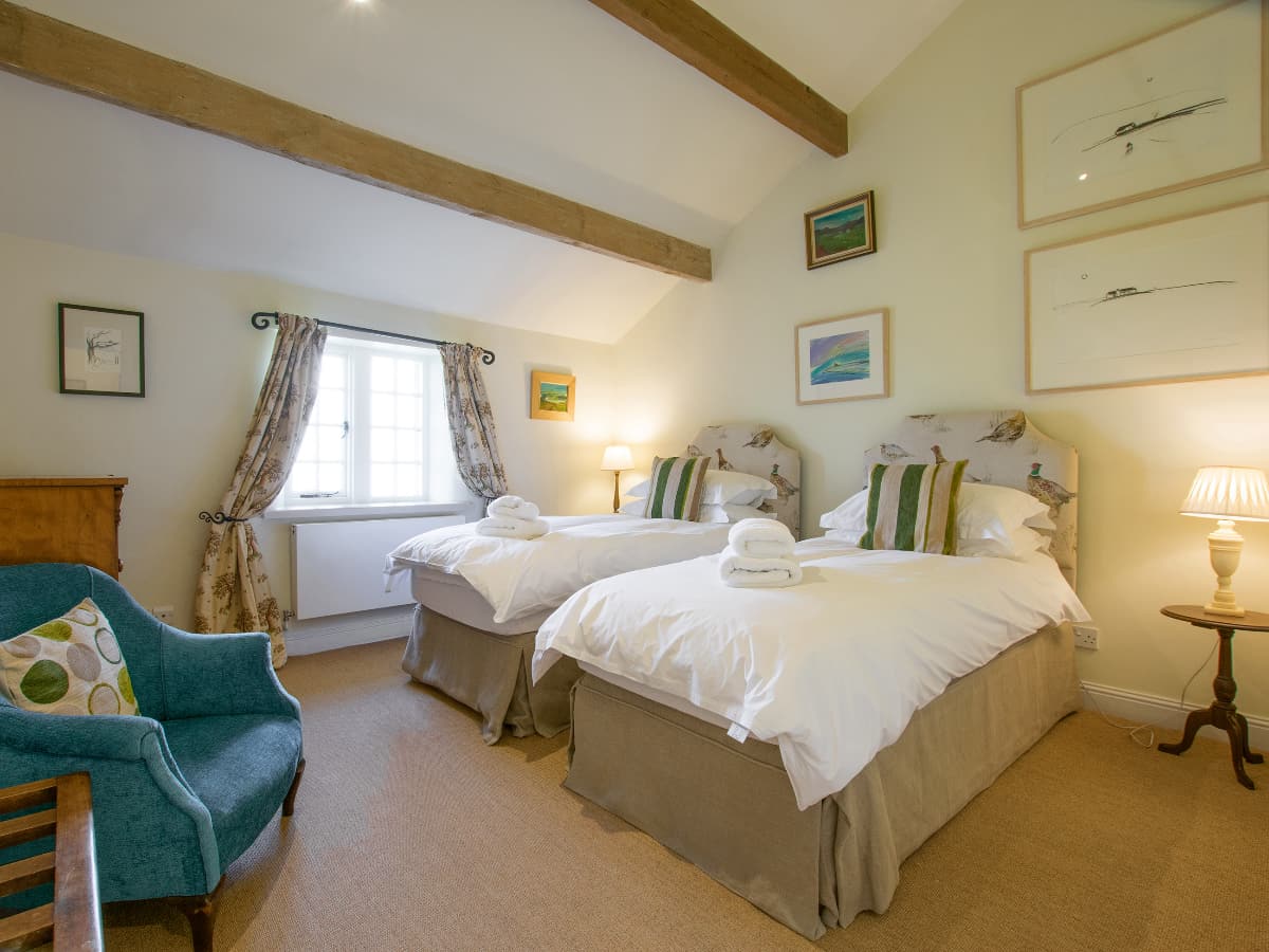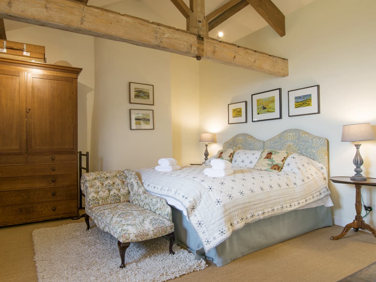 The spacious interior includes a large country-style kitchen, perfect for preparing hearty meals after a day on the trails, a formal dining room for group dinners, and two cosy lounges, each with a wood-burning stove, where guests can relax in front of the fire. The three beautifully furnished bedrooms offer plush beds and stunning views across the rolling landscape, ensuring a restful night’s sleep after your adventures.