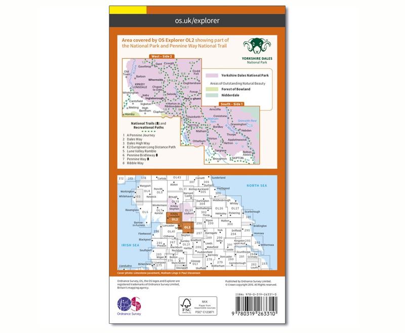 Map of Yorkshire Dales – Southern & Western Area – OS Explorer Map OL2 (Whernside, Ingleborough & Pen-y-ghent).