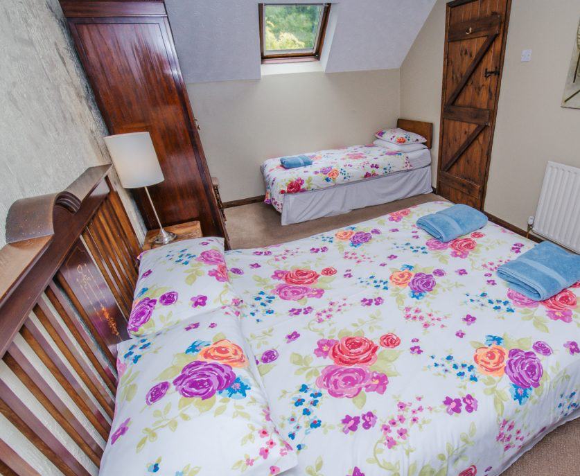 It comprises a family bedroom with a double and single bed, a double bedroom and a twin bedroom. It has an upstairs family shower/bathroom and a downstairs shower room complete with sauna and toilet with a large shower enclosure.