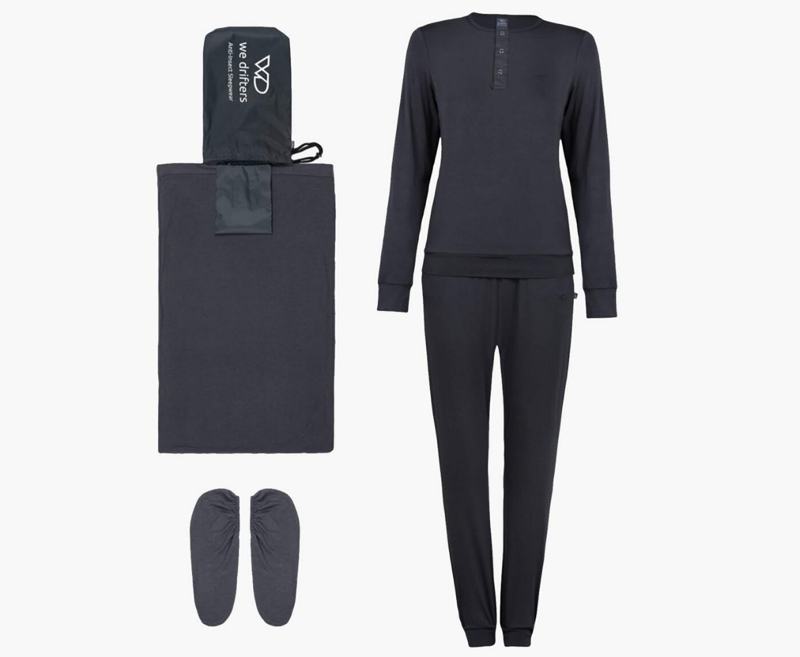 Each set includes a top, trousers, socks, and 2-in-1 pillowcase and storage bag.