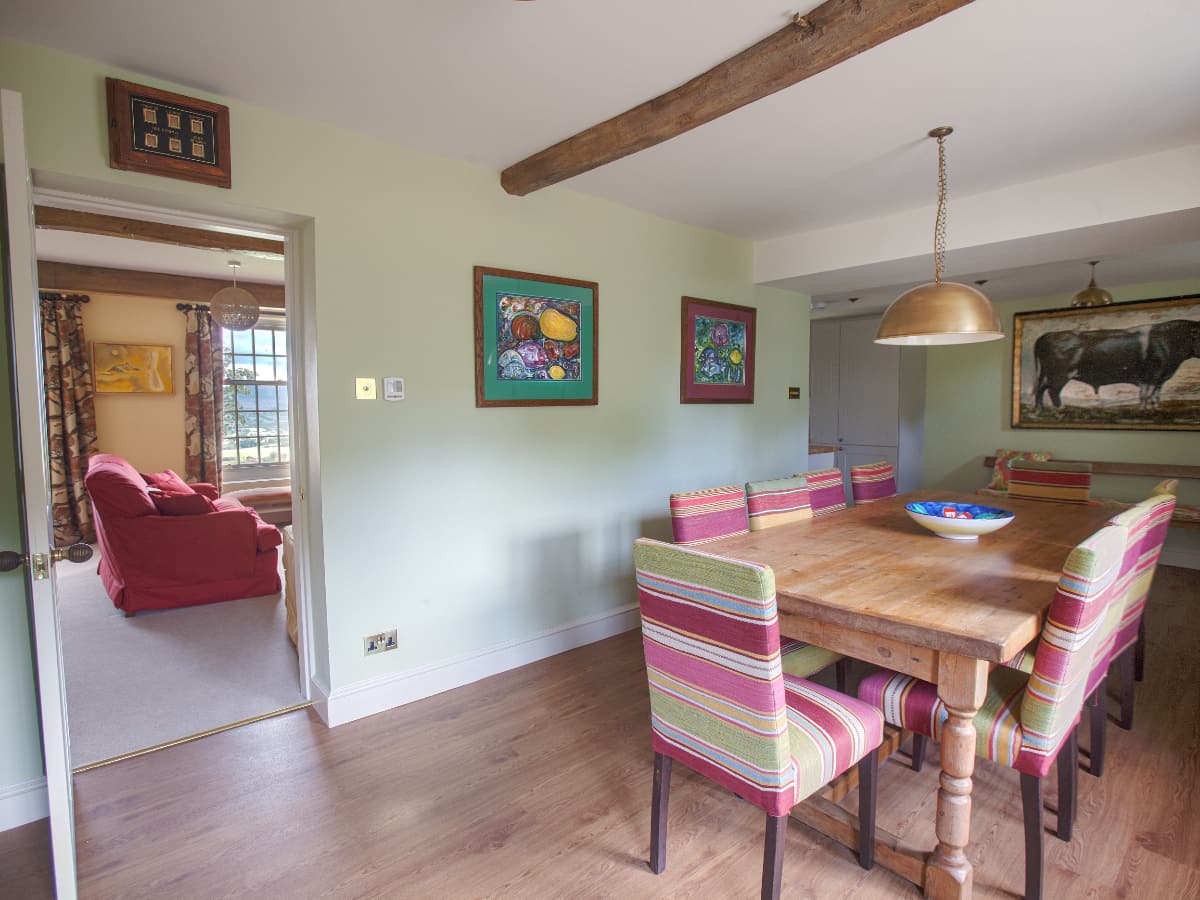 Sleeping up to 8 guests across four spacious bedrooms, Yellison is an ideal retreat for smaller groups or families seeking peace and tranquillity in the heart of the countryside. The open-plan kitchen and dining area is well-equipped for preparing meals, while the light-filled living room features large windows and cosy seating, perfect for relaxing and soaking in the sweeping views of the rolling hills and woodlands. On cooler evenings, the log-burning stove adds a touch of warmth and comfort.
