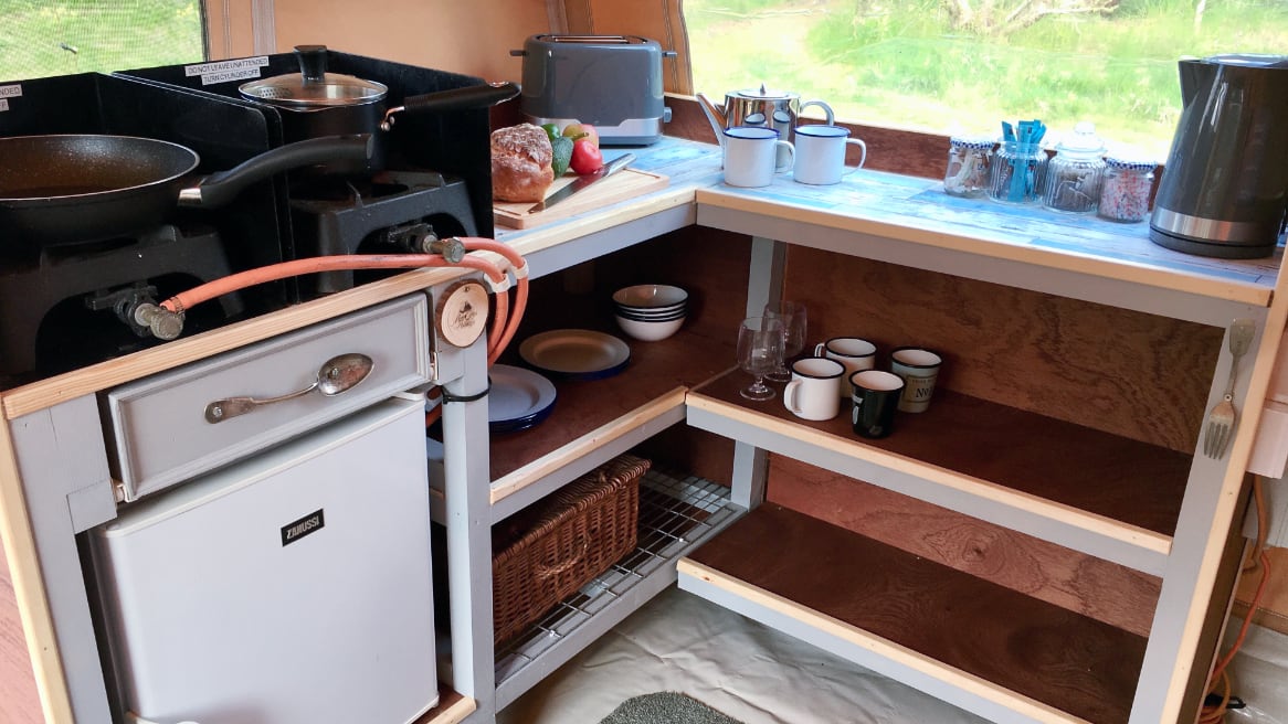 Enjoy a comfy night’s sleep in a double bed with duvets and pillows, the children will sleep on Outwell’s luxury sleeping mats in cosy sleeping bags. You’ll have your own equipped kitchen area with gas burners, fridge, kettle and all the essentials for cooking that full English breakfast.