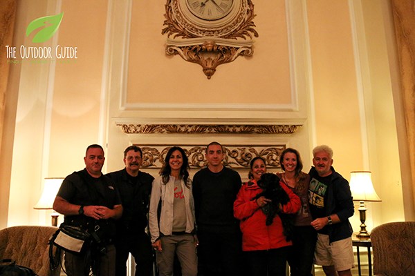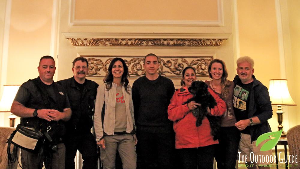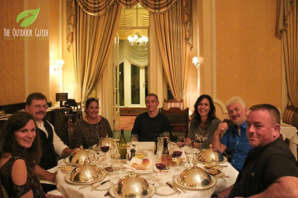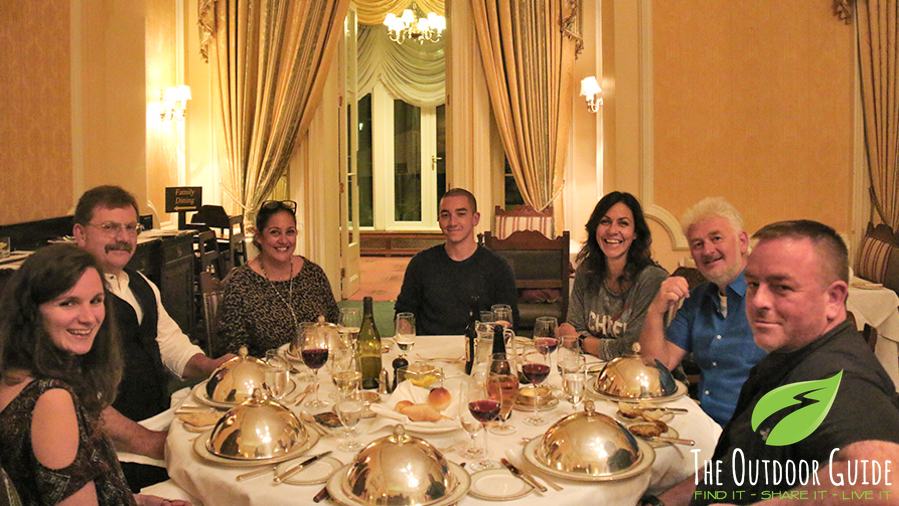 Julia and the crew enjoying a well earned dinner after filming for new walking series, Best Walks With A View.