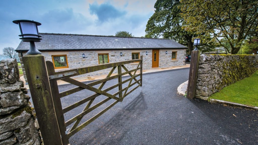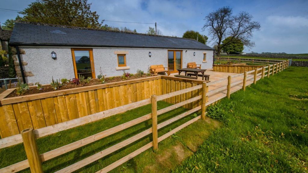 The large patio behind the cottage enjoys uninterrupted views over fields towards Miller’s Dale – the only thing blocking your view may be the cows! The patio has a dining table with benches and raised beds with a selection of plants chosen for their sensory nature, colour and texture. We have installed wide, level paths and lighting round the entire exterior of the building, giving safe and easy access to all areas from the level car park outside the front door.