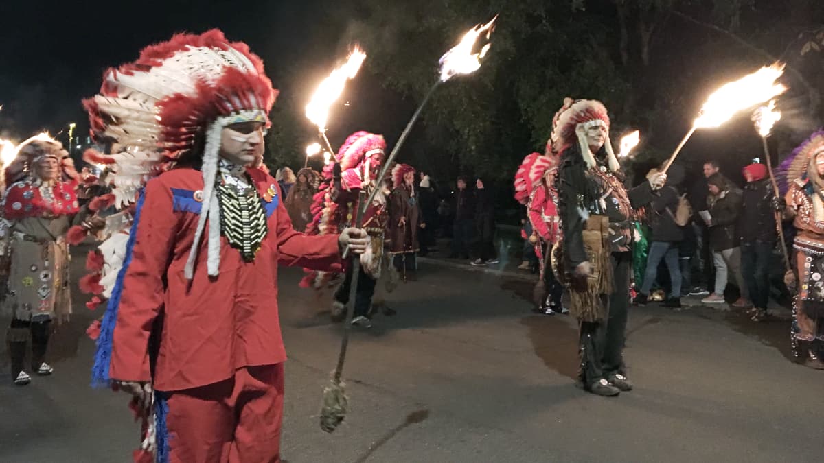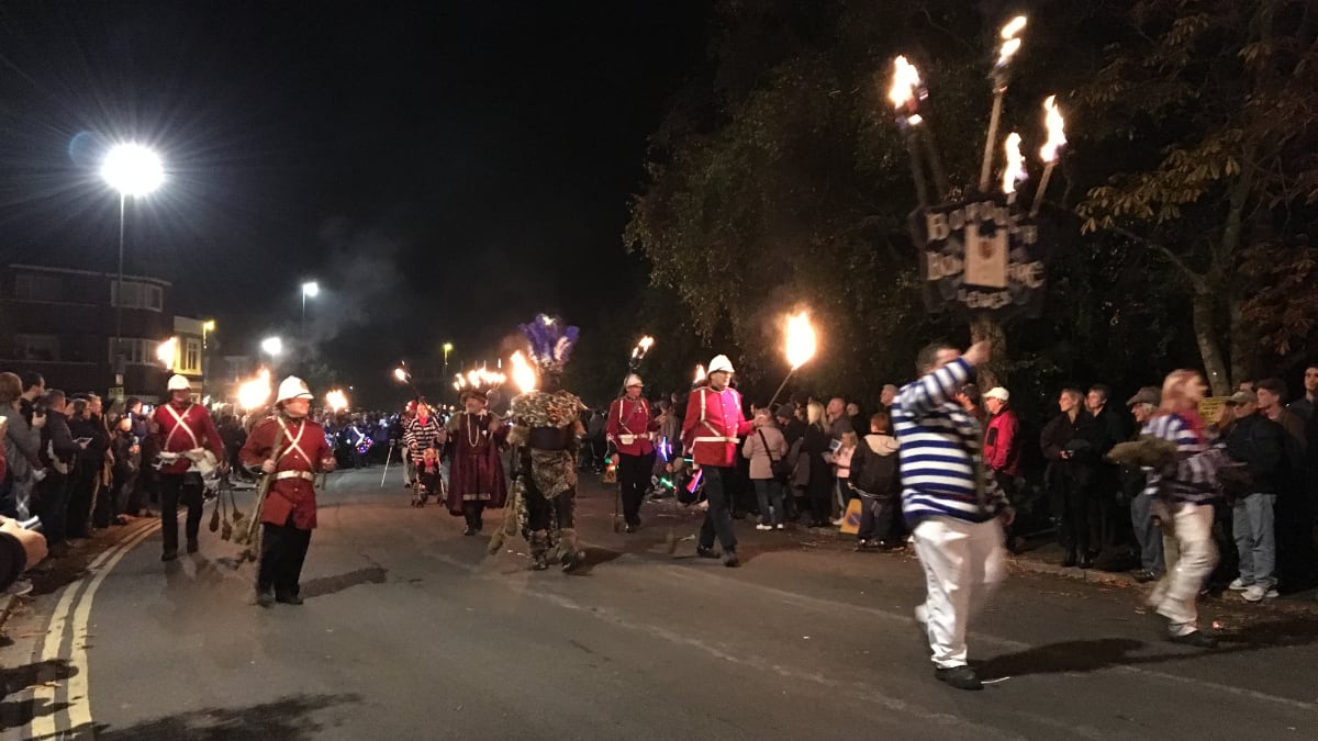 The keystone of Sussex based bonfire celebrations aren’t necessarily the bonfire itself or the fireworks that the night will culminate in. Instead it is the parade that takes place through the town where the celebration is taking place. Bonfire societies from across Sussex and neighbouring counties (where this tradition has overspilled into) come together in traditional dress of their society and parade through the streets – often carrying burning staves, sometimes with banners of protest (more on that in a second) and raising amazing amounts of money in the process for local charities.