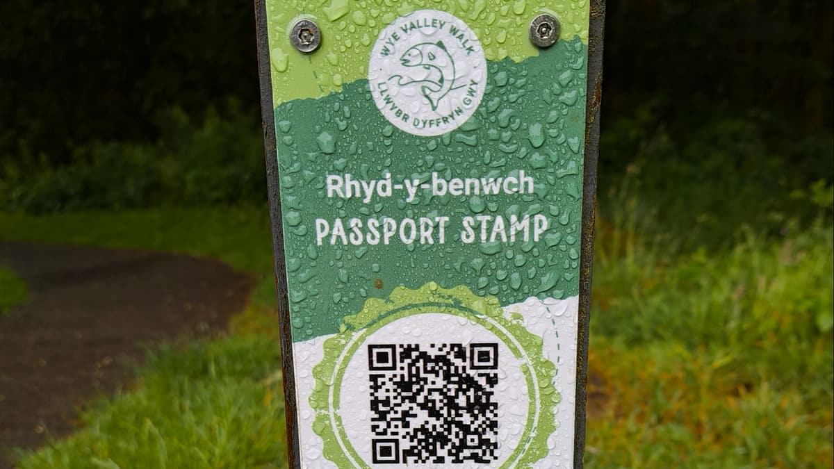 If you are collecting passport stamps for the Wye Valley Walk you need to make sure before you leave Rhyd-y-benwch take your photo beside the info board or scan the QR code on the ‘All Walks’ sign and collect your digital passport stamp when you have mobile signal later in the day.