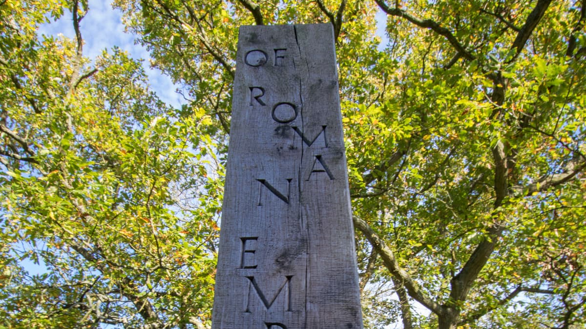 Take the track heading south and uphill . Keep straight on at a junction of tracks by a house on the left. After the stables take the left fork and go straight ahead uphill, ignoring paths off to the side, along a wooded track. This widens after a house and the view opens up to the left towards Haugh Wood (home to 600 different species of butterflies and moths, including the Pearl-bordered Fritillary, the Wood White and the Drab Loper moth – very much worth a visit if you’re a nature lover). Continue on the track, passing a house called ‘Morning Star’, to a junction locally known as ‘Common Hill Fiveways’ where a sign points to the Tom Spring Memorial.
