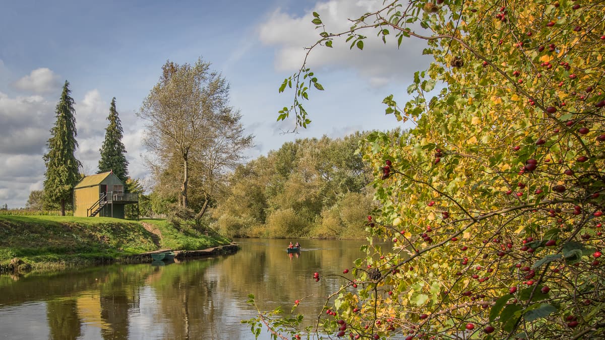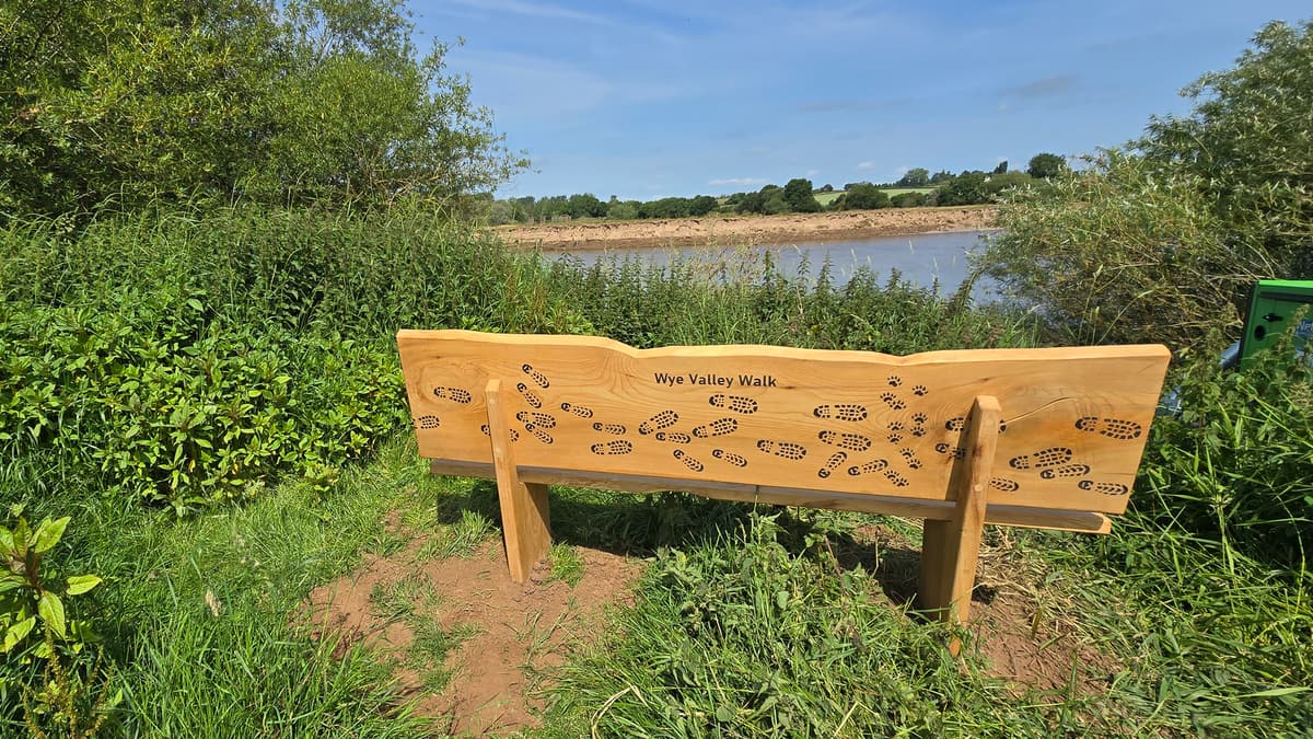 Soon after the bridge, at Orchard Cottage, turn right along a hidden, shady footpath. Go through the gate into the field and walk along the right hand edge of the field (be sure to take a moment to admire the views to Foy Church to the right). Go through a kissing gate and along the farm track. At the end of this field go through another kissing gate, up steps and through Monks Grove wood. Turn left out of the wood to walk along the edge of the woodland. When it ends, keep straight on across the field towards poplar trees, passing a pond to your right. Follow the track beside the hedge up to a junction of paths. Turn right at the junction with the farm track. Immediately the track bears left (to The Cot), but the Wye Valley Walk keeps straight on into an expansive field. The route turns left here to follow the hedge on your left, but just to your right on the riverbank is a nicely placed bench looking across the Wye to Backney Common – perfect for taking a moment to rest and admire the view.