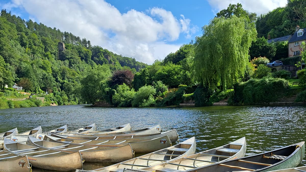 Stage 15 of the Wye Valley Walk is mostly fairly level walking as you cross the border between Wales and England four times. If you are only doing this stage you can leave your car in Monmouth and catch the number 34 bus between Monmouth and Ross, alighting at Whitchurch and following footpaths and lanes for 2km to reach the hand ferry in Symonds Yat West, opposite the Saracen’s Head. Hail the ferry to take you to the east bank of the Wye where this section starts. (The ferry runs during summer months, check times with the Saracen’s Head.)