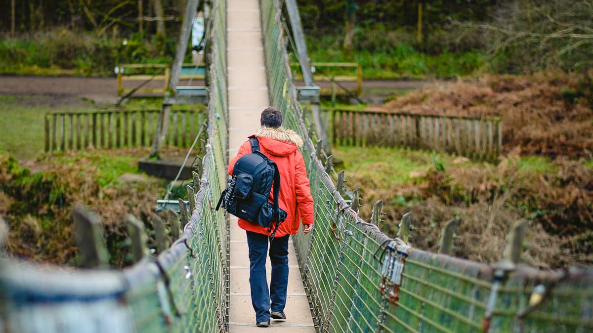 Go through the car park and onto a gravel track. This is the Peregrine Path, a cycle way which runs all the way to Monmouth, but we will only follow it as far as the Biblins suspension bridge.