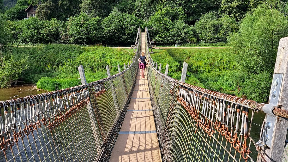 We are headed for Bilbins suspension bridge, turning right to cross it to Biblins Youth Campsite (a Forestry Commission site managed by Woodcraft Folk). On the other side of the bridge we turn left, keeping to the left of the camping field. We leave the field to follow the riverside path through woodland. Here you may see evidence of limestone quarrying to the right, whilst high above you are steep limestone cliffs including the Seven Sisters Rocks and King Arthur’s Cave. If you wish to explore these, a very steep path on the right will take you up to King Arthur’s Cave.