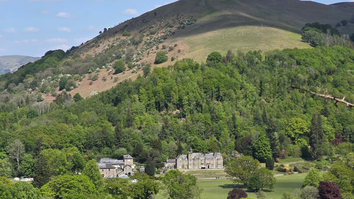The route continues along an ancient coach road, which today is also National Cycle Route 8 – so watch out for any cyclists coming past you. There are lovely views here across the valley to the left towards Doldowlod House.