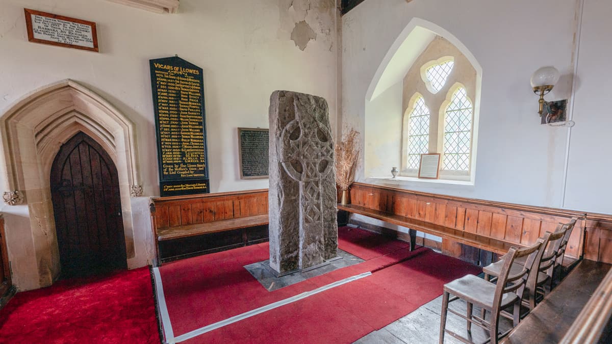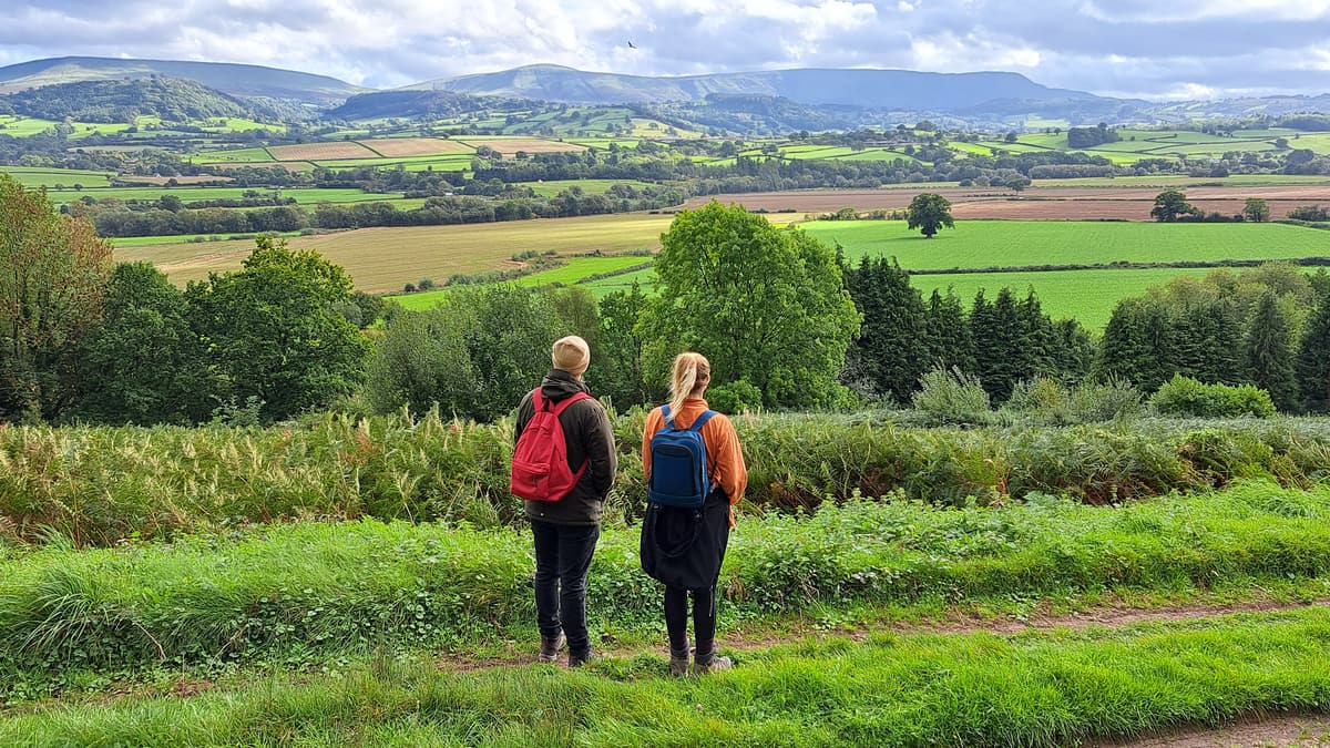 Pass the water treatment works and go through a gate, turning right to walk along the field edge passing through a series of gates until you reach a concrete water trough on your left. Now head diagonally left across the field to a gate in the far corner of the field. Go through the gate, cross the old road, through another gate and then up to the A438 (SO 179 401). Turn right to walk on the grass verge for 800m. After the uphill section levels out, turn left after Little Mill Cottages to walk up a lane. Keep climbing and where the tarmac stops continue on the gravel track walking between buildings at Brynyrhydd Farm. After the last barn on the right, turn right straight away and walk along a walled path with views towards the Black Mountains. At the end of this short walled section turn right. The path goes through scrubby woodland with some veteran trees eventually emerging through a gate into a field looking towards the hamlet of Llowes, with lovely views of Hay Bluff and Lord Hereford’s Knob or Twmpa. Walk downhill to the right of the fence heading for the houses. Go through a gate in the left corner of the field, then over a stile and through a kissing gate to come out on the road. Turn right and walk down past the houses, turning left over a bridge and into the churchyard of St Meilig’s Church.