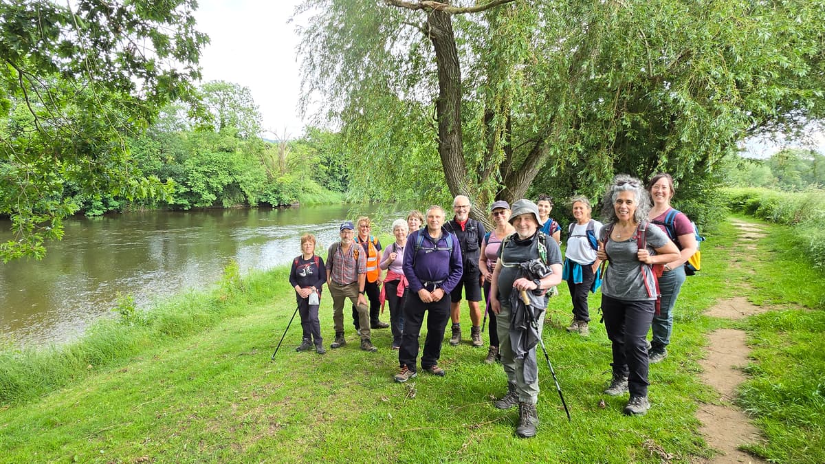 We’re starting on the north side of Glasbury Bridge, taking the steps down to the left immediately before the river. We’re then going to walk through the field beside an avenue of poplar trees full of mistletoe.