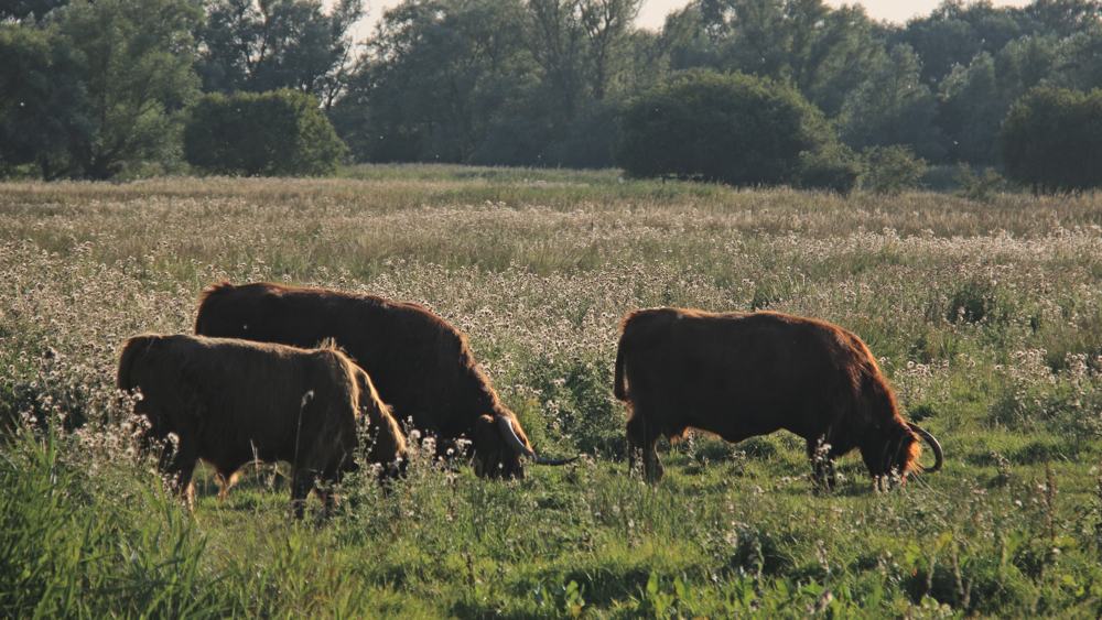 Look out for dragonflies in the summer, the black wind-pump with its white sails, and the National Trust’s herds of sturdy highland cattle and Konik ponies grazing the grassland.