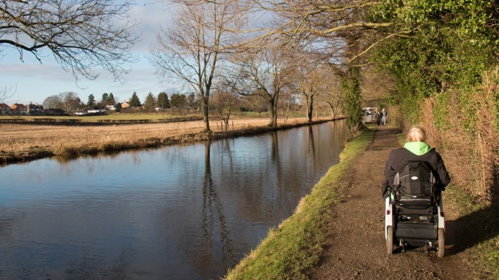 It is a short gentle walk from the canal basin to the first lock beneath shaded by lovely lime trees. Just before the first lock – Rhodesfield Lock – there is the pretty whitewashed former lock-keeper’s house. The path is wide enough for wheelchairs, making it perfectly accessible.