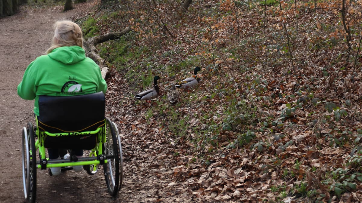 The walk is mainly on compounded surface or tarmac paths. There are two steeper sections on this walk with a gradient of approximately 1:12. Whilst it is possible to use a trail rider attachment on a manual wheelchair, you may need a push up the steeper incline if using a manual wheelchair. However the route is suitable for a Tramper or TerrainHopper.