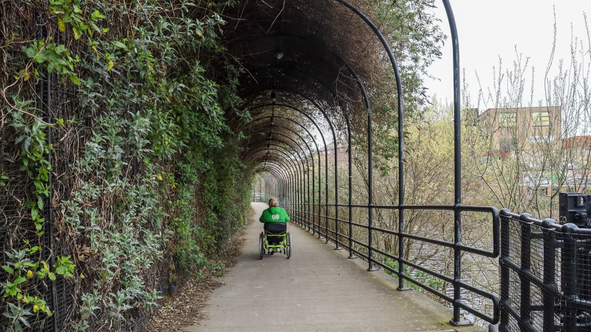 The route is mainly on tarmac tracks but the tow path is not surfaced in some sections and can get muddy. The route is suitable for a mobility scooter such as the Tramper, TerrainHopper or Trailrider.