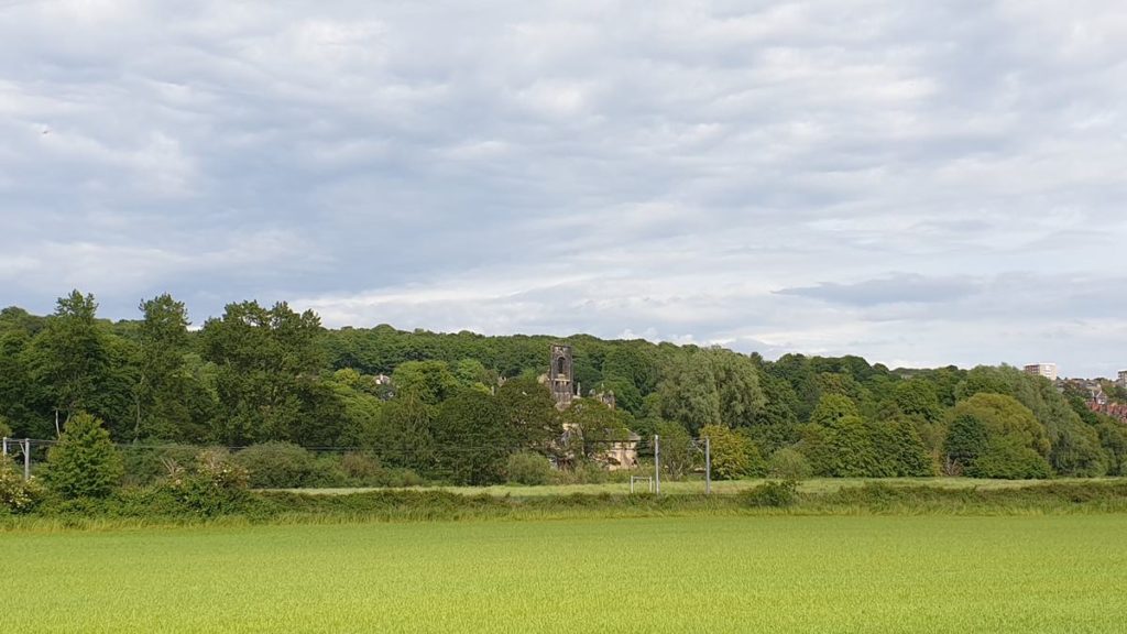 Easily visible across the valley are the ramains of Kirkstall Abbey. The abbey was founded in the twelfth century and the dramatic ruins have attracted the attention of artists such as JMW Turner.
