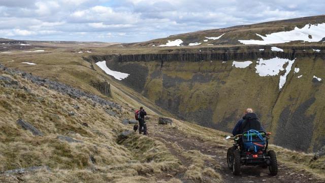 Although this is a bridleway, the terrain is very uneven, with some climbing over boulders required towards the top. I completed the walk in the TerrainHopper – a serious 4×4 all terrain wheelchair, which had no difficulty climbing the gradients and the rocks. Please take this into consideration if you plan to do the walk. Make sure that your chair can travel over the type of terrain that you will have to cross on this walk. The views from the top make the climb worth it.