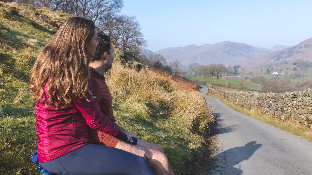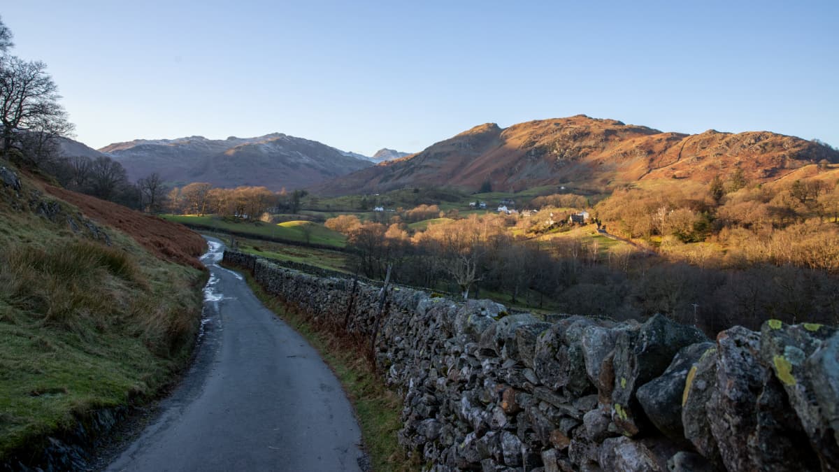 Once you’ve finished exploring the caves, return to the main track and continue along through another gate until you see an old bridge on your right in a field. This is Slater Bridge. Cross the bridge, turn right through a gap in the wall and follow the path until you reach a road (~5km). Walk up hill on the road to a junction and the small hamlet of Little Langdale.