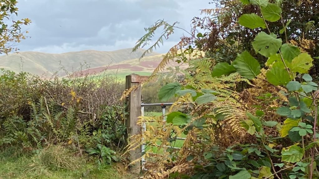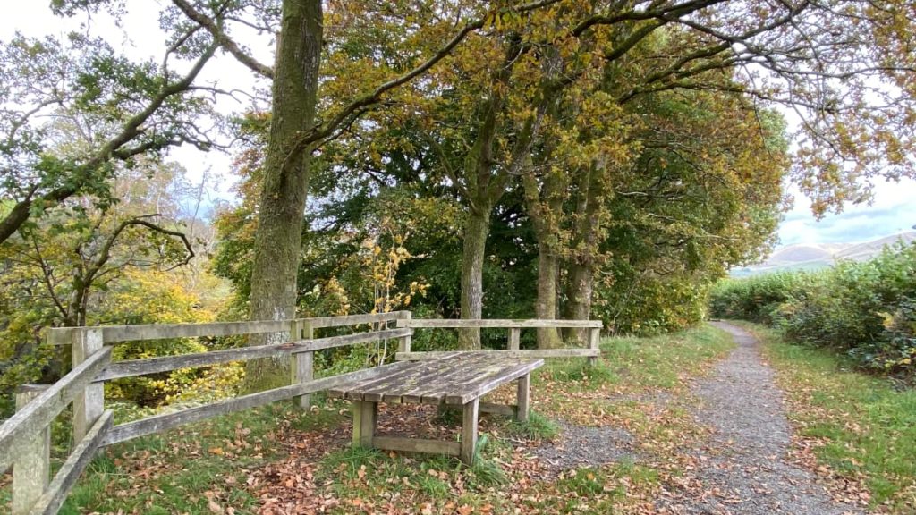 At the end of the hard standing track you will find the final bench. From here you get glimpses of the majestic Howgills coming into view. This is the spot where you turn around and retrace your steps.