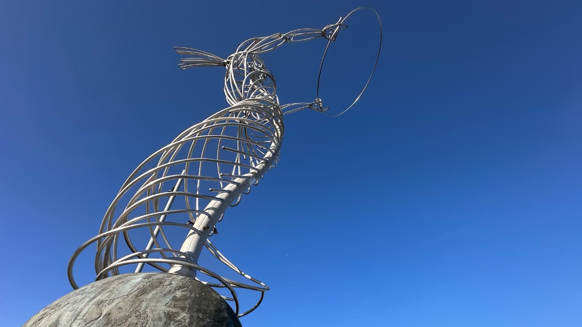 We keep going along Ann Street, crossing the main road of Victoria Street, until we reach the river. To our right is the Beacon of Hope in Thanksgiving Square. The female figure represents multiple allegorical themes related to hope and aspiration, peace and reconciliation and is based on both classical and celtic mythology. Standing on a globe, she signifies a united approach to life on earth, encompassing oneness whilst celebrating diversity.