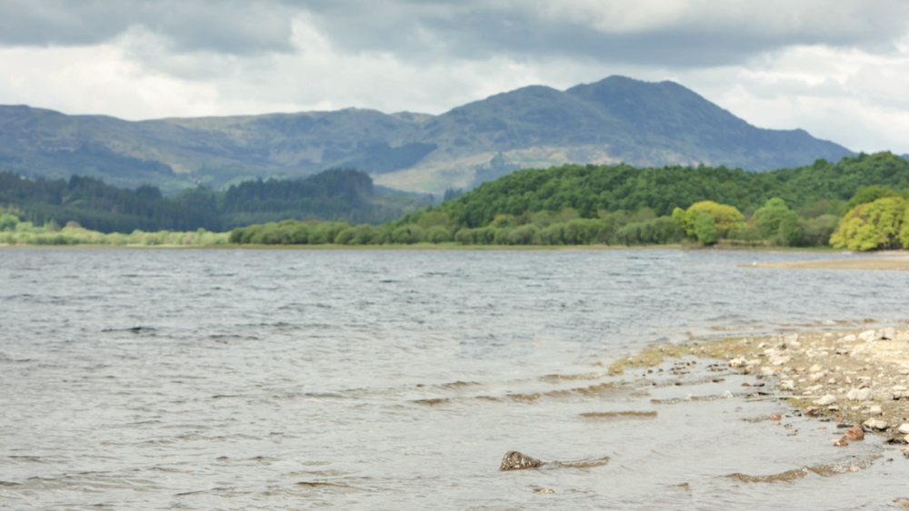 - In about 100m (1-2 mins) this crosses a wooden bridge by a green boathouse then winds along the loch shore for about 2Km (30 mins) without obvious landmarks, till you pass through a gap in a stone dyke and the woodland starts to thin.