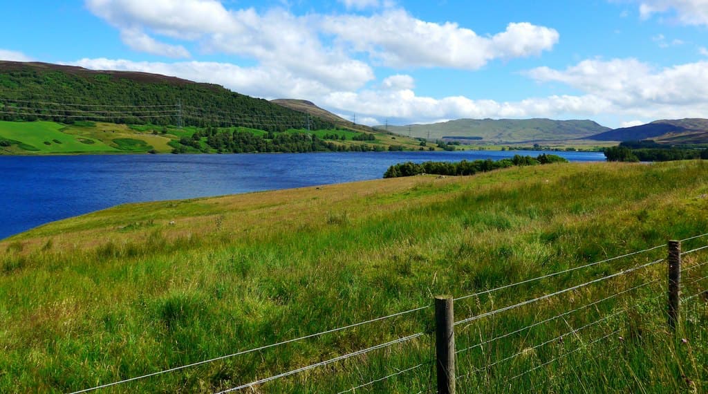 Our walk takes us from the northern end of the village along a private road signed as “Footpath to Kenmore”. It first goes past some cottages before turning into a rough farm track with a cattle grid – which we’re going over and keeping straight on. Keep following the path straight on – past a stone wall, the path starts to go up and then you see Loch Freuchie come into view. Keep walking along the track that will run alongside the loch.