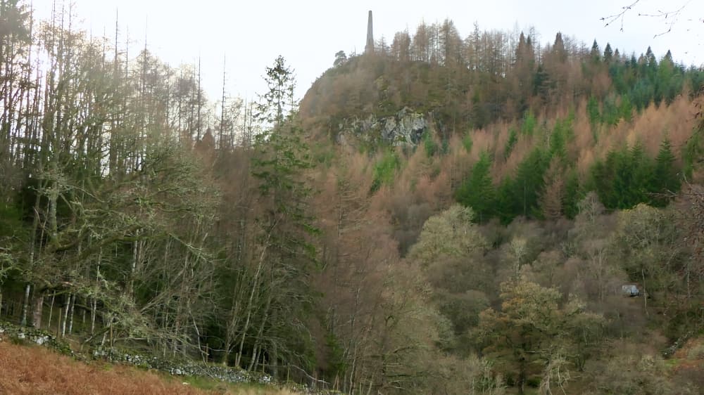 After a while we take a footpath on the left and start our ascent up to the summit of Dun More to see the Melville Monument – an obelisk with amazing views out across the area.