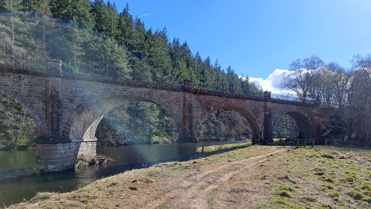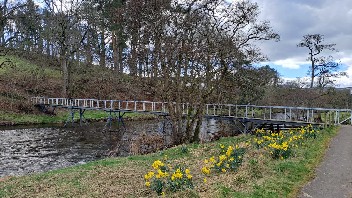 Once you reach the road, you go right to the bridge where there are picnic benches next to Manor Water. You can take a break here and view back up the route you have covered so far.
