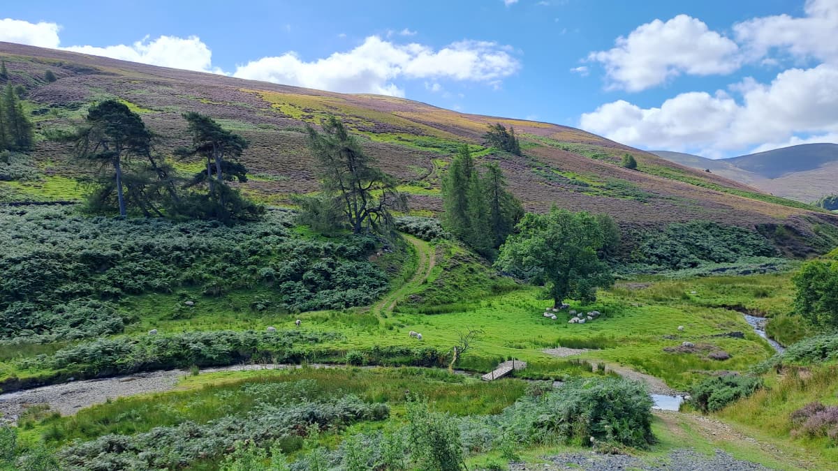We head all the way along the cut to Haystoun then follow the farm track nearly to the end. On the map you come across the sheepfold, this is where you head up to the summit. Make sure you take as many rest stops on the way up as you need (I had six!). Use each as an excuse to admire the view.