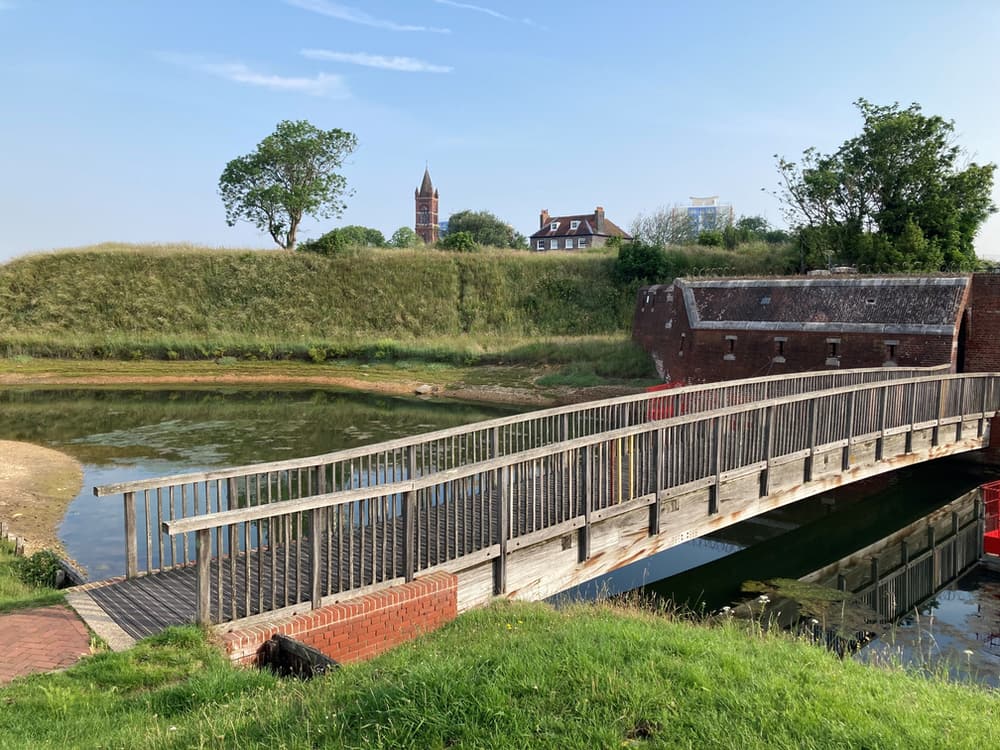 2) Built in 1802/3 as protection to Haslar gate, Trinity Bation contains a capanier with gun slits and also houses sluice gates. Right up until the early 20th Century, Gosport was a fortified town, and this is just one of the remnants of this time. Work is currently ongoing to restore this area so that visitors can at some point walk around this historic feature.